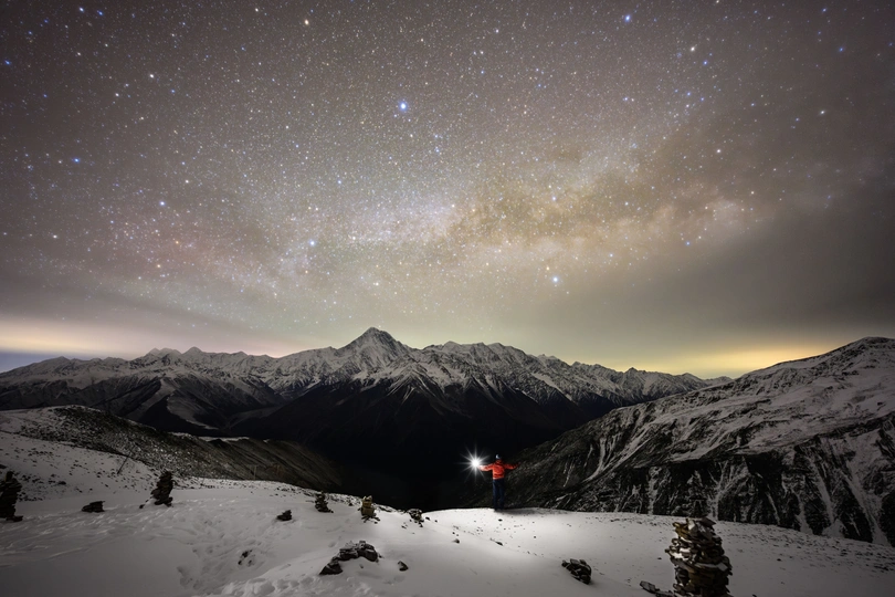 拍摄于子梅垭口 银河曝光200秒单张 地景曝光250秒单张