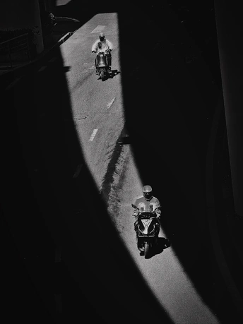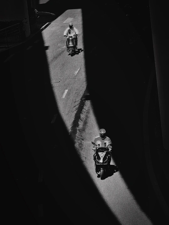 光影交错,阴阳相连,你我皆行色匆匆,奔波于尘,未曾歇脚欣赏美丽的景色。 城市的清晨总是带着几分匆忙与几分诗意。阳光斜洒在宽阔的街道上,与高楼投下的阴影交织成一幅天然的画卷。摩托车手们穿梭其间,他们的身影被拉长又缩短,仿佛时间也在这一刻变得模糊。每一次转弯,每一次加速,都像是在书写属于这个时代的独特篇章。这里没有过多的喧嚣,只有光影之间流淌的故事,诉说着现代都市生活的节奏与温度。 在这条充满对比的路上,有人追逐梦想,也有人寻找片刻的宁静。阳光与阴影交替出现,仿佛提醒着我们:生活中的每一个瞬间,都值得被铭记。那些匆匆而过的身影,或许正是我们自己。在这座城市里,每个人都是自己故事的主角,而光影,则是这些故事最忠实的记录者。