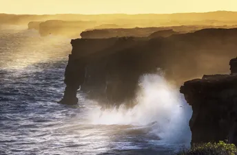 火山爆发后的火山岩入海时,形成了一道道极具特色的景观。