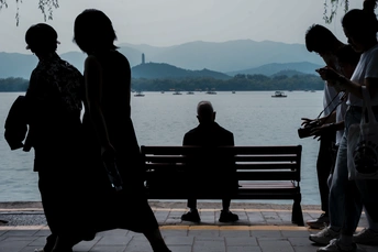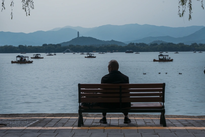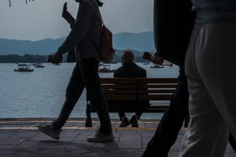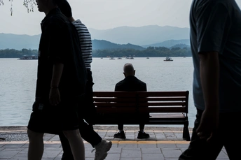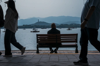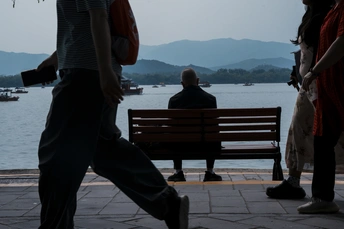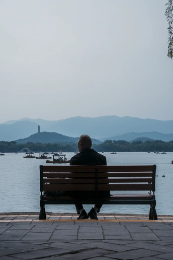 他独坐湖畔长椅,形单影只。湖水潺潺流淌,船只三两漂泊,远处山峦朦胧。周遭热闹似与他无关,孤独如影随形。他凝望远方,眼神深邃,过往回忆与眼前景致交织。这孤独是喧嚣世界里的宁静角落,是繁华落尽后的自我沉淀,他在这天地间,与孤独相拥,守着独属于自己的寂静时光。