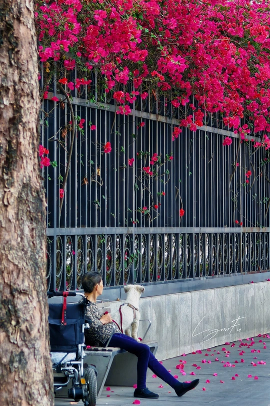 路过,看见一位残疾老奶奶和她心爱的狗狗坐在一起,相互陪伴。