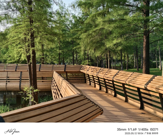 在深圳的这方天地,水杉林立。阳光倾洒,枝叶间闪烁着细碎光影。漫步于木质栈道,脚下的纹理诉说着自然的质朴。抬头,是蓬勃生长的绿意与湛蓝天空,低头,是繁茂草木铺就的生机。每一处景致,都是大自然绘就的诗画,静谧且美好,让人沉醉在这独属于五月的温柔时光里。