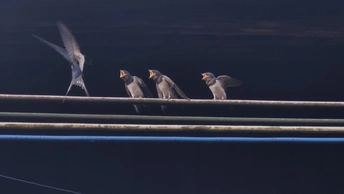 燕子妈妈抓虫回来,饿急了的小燕子张大嘴巴,迎接妈妈的投喂。小燕子可以站在电线上,马上可以起飞了。