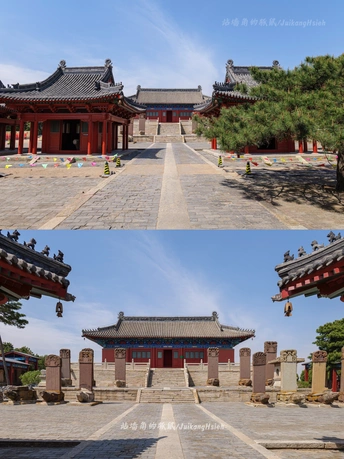 北镇庙依山而建,背靠医巫闾山,山如屏障,气象万千。古人说“北镇镇塞”,它是山,也是神,是天子为国为民所礼拜的精神高地。庙宇不语,却自有威严,那些檐角飞翘的宫殿,那些被岁月打磨出的斑驳石阶,每一寸都承载着王朝更迭、山河变迁。 站在大殿之前,举目便是黄瓦流金,重檐翘角,巍然如帝都朝堂。殿中供奉镇山之神,神像不显怒容,却自有肃穆之气,仿佛目光穿越千年,仍在护佑一方风调雨顺、百姓安康。 秋风轻抚,古树婆娑,碑林间隐隐传来脚步声,却无人应答。或许,那是来自前朝的使者,奉旨祭祀;又或许,是旅人踏入此地,心生敬畏。阳光洒落在御碑亭上,乾隆御笔“海岱重镇”四字熠熠生辉,仿佛将北镇的气魄镌刻进整个辽西的山川之间。 有些地方,不因人群喧哗而伟大,只因沉默千年而厚重。北镇庙便是如此,它不言,却讲述着北国的庄严与肃穆,讲述着一座庙宇如何成为国家祭坛,如何在风雨中守望山河。 行至寝殿之前,回首之间,山色空蒙,古庙深深。原来,这世间最动人的风景,不是热闹繁华,而是寂静中的光阴流转。