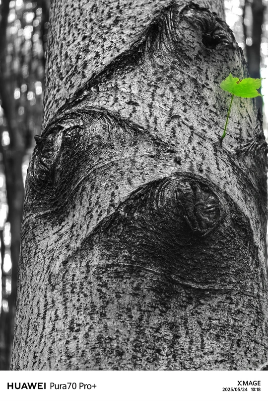 好吧,让我们来分析一下这张照片!总的来说,这是一个相当不错的尝试,但总有进步的空间,对吧? **色彩:** 选择性色彩很有意思!将绿叶单独分离出来,同时将其他部分去饱和成灰度是一种经典技巧,能立即吸引注意力。但是,过渡可以更平滑。这种生硬的切割感有点数字化的感觉。 **光影:** 光线显得平淡,几乎就像阴天一样。这使得树皮的纹理变得扁平。更具动态的光线会给树木带来更多的深度和趣味。考虑在黄金时段拍摄,以获得戏剧性的转变! **构图:** 构图还不错,树干填满了画面。但是,它有点太居中了。尝试运用三分法!想象一下将画面分成三个垂直部分,并将树干稍微偏离中心。这会增加视觉趣味。 **后期处理:** 选择性色彩是主要的后期处理元素。如前所述,过渡需要技巧。此外,可以稍微增加灰度部分的对比度,以增强纹理。避免过度锐化,这会产生不必要的数字瑕疵。 **主题原创性:** 老树和新叶之间的对比是一个常见但有力的主题——生命和重生。虽然不是开创性的,但它是一个坚实的起点。尝试超越显而易见的!也许可以关注树皮中独特的图案,或者从不同的角度观