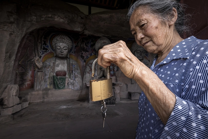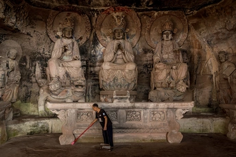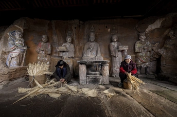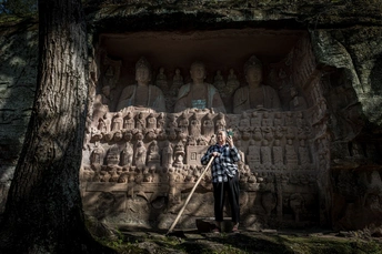 摩崖石窟守护人 大足,安岳摩崖石刻始于南北朝,胜于唐、五代、北宋,以佛教造像为主,亦有道教造像,它有圆雕、塔雕、壁雕、碑刻等技艺形式,刻工精细,刀法娴熟,匠心独具,是古代石窟寺院雕刻艺术的宝贵遗产。 而这些摩崖石刻能得到保护是有一群摩崖石刻的守护人,他们数十年如一日坚守摩崖石刻造像,保护文物,对石刻造像深怀敬仰之情,饱含文物情怀,使得大足,安岳摩崖石刻历经千年风雨如今浓妆淡彩,栩栩如生,散发出让世人为之惊叹的魅力。