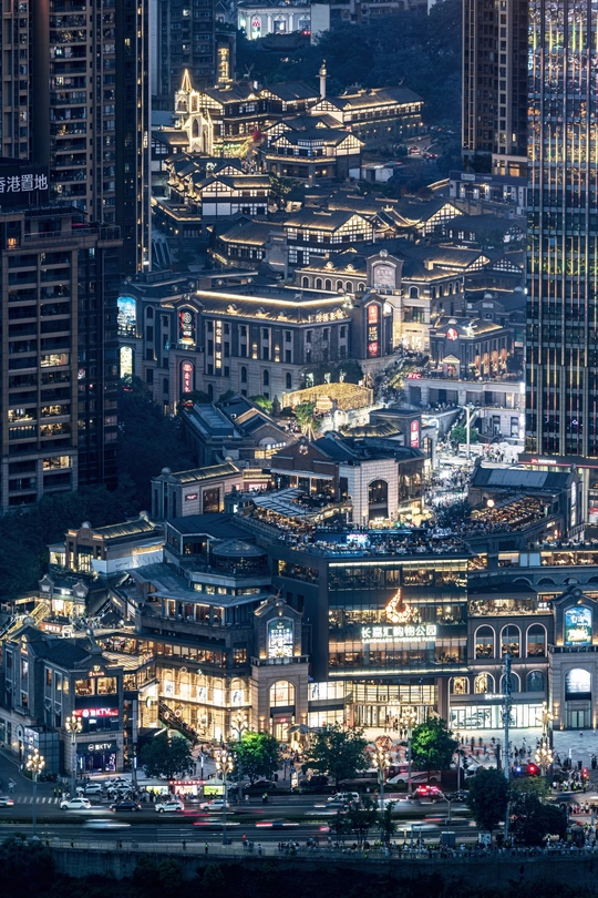 夜幕下的长嘉汇充分的体现出来山城重庆的坡地特点。