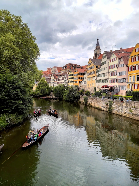 - 地理位置:位于内卡河河谷中,在斯图加特以南约40公里,施瓦本山开始于其东南大约20公里处,阿默河在此汇入内卡河。 - 内卡河:穿城而过的内卡河是蒂宾根的母亲河,也是城市的活力中心。河上有独特的撑杆小船,游客可乘船欣赏河畔的古老建筑和郁郁葱葱的树木,感受城市的独特魅力。