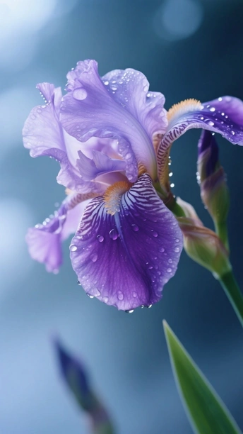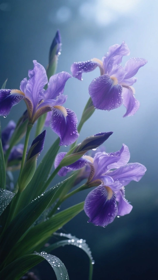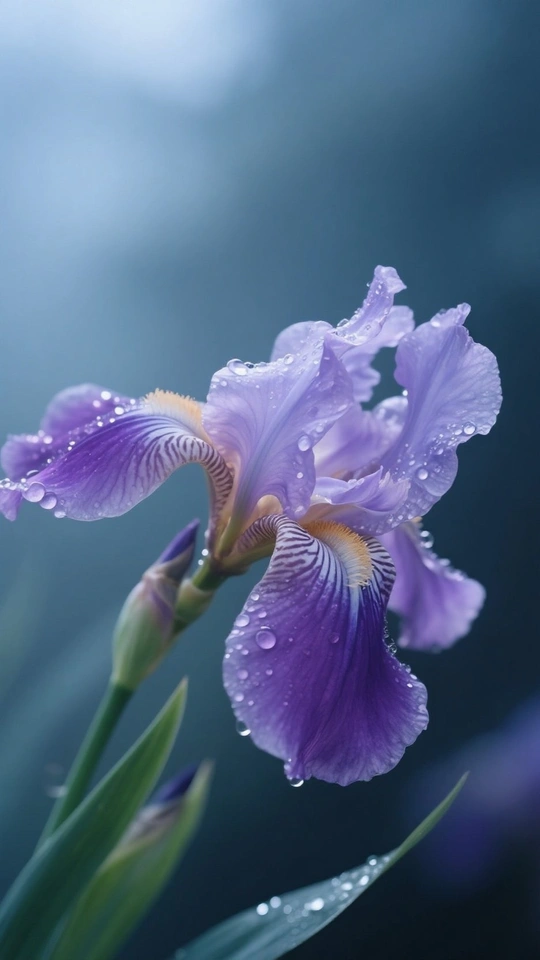 这组紫色鸢尾花照片,镜头巧妙捕捉花瓣上晶莹水珠,似颗颗珍珠点缀,于光影交织间,凸显花瓣纹理与色彩层次,朦胧背景更添梦幻氛围。构图上,单朵特写精致细腻,多朵同框则尽显蓬勃生机。每一张都仿佛诉说着自然的诗意,将鸢尾花的优雅与灵动展现得淋漓尽致,让人仿若置身于静谧花园,能真切感受到那份独属于花草的清新与美好,是视觉与心灵的双重盛宴。 色彩:整体色彩和谐,以紫色和蓝色为主,营造出一种静谧、清新的氛围。色彩搭配统一,使画面看起来非常舒适。 光影:光线柔和,应该是漫射光,细节清晰。水珠的反光增添了画面的趣味性。 构图:构图简洁,主体突出。花朵位于画面中心偏上的位置,符合视觉习惯。 后期处理:后期处理恰到好处,色调调整自然,没有过度修饰的痕迹。饱和度控制得当,使花朵的颜色看起来鲜艳而不失真实。 主题原创性:主题明确,表现了鸢尾花的娇艳美丽。但可以尝试从更独特的角度切入,例如,花瓣的纹理、水珠的形状等等,挖掘更深层次的美。 情感共鸣:照片能够传达出一种宁静、美好的情感,让人感到放松和愉悦。 思想深度:照片有一定的思想内涵,表达了对自然之美的赞美。