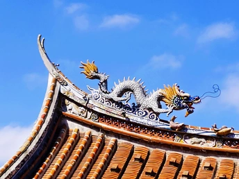龙踞于檐,鳞爪张扬,气势威严,守护着一方安宁。