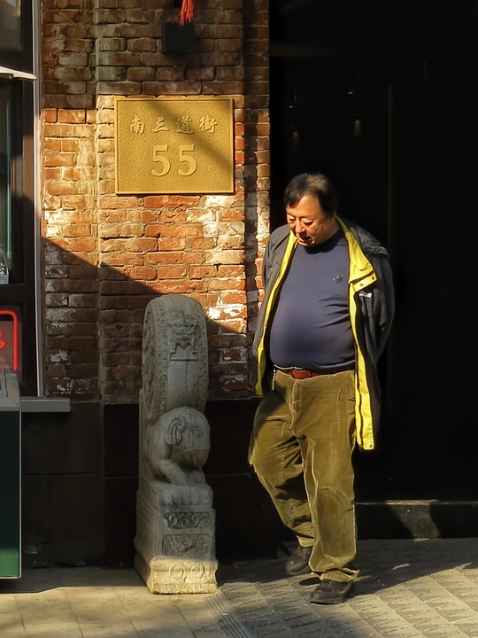 守住酒馆儿前面的一束光,拍了几张进出酒馆儿的客人。我觉得走出来略带微醺的客人在光影里很有画面感。