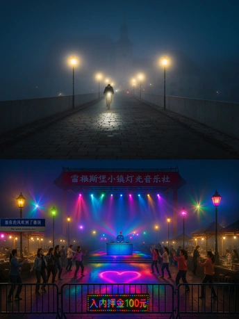 不知为何很多景区热衷于把原本自然、宁静、古朴、震撼等等各种风格的风景,全部都加上五彩射灯,开上酒吧烧烤店,一通改造成夜店蹦迪风。 图一利用AIGC技术,参考国内最近引起热议的某景点改造方法(图二图三),我对德国雷根斯堡的石桥拍摄点进行了“景区升级打造”,不知道大家感觉如何呢? 图上拍摄:哈苏X1D 35mm F4 1/25s ISO400 图下制作:Sora+Flux+Photoshop AI
