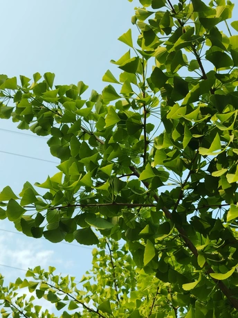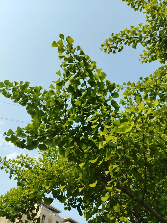 画面聚焦于松树枝条,针状绿叶紧密排列于棕褐色枝干,展现出蓬勃生机。针叶坚韧,翠绿鲜亮,背景模糊绿意衬托,凸显松树独特质感与生命力,传递出自然清新之感。 银杏树枝叶映入眼帘,扇形叶片小巧精致,边缘微微起伏,叶脉清晰。嫩绿色叶片在枝头错落有致,于蓝天背景下更显清新明亮,洋溢着自然灵动与活力。