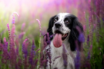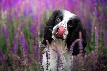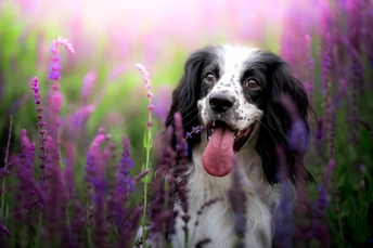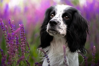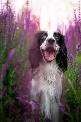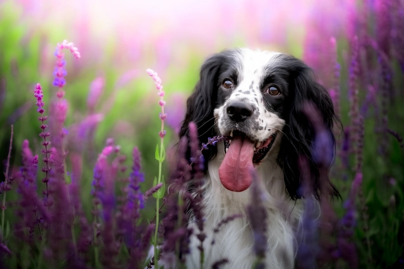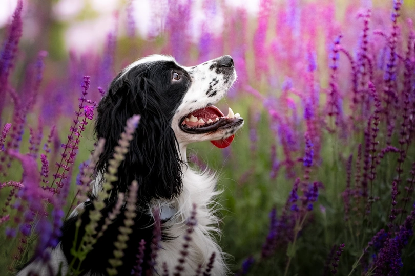 鼠尾草丛中的史宾格犬