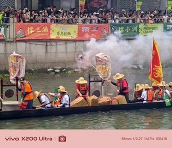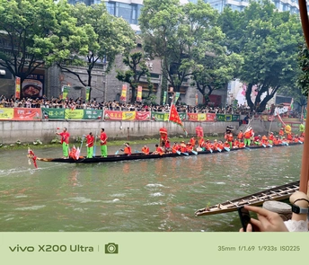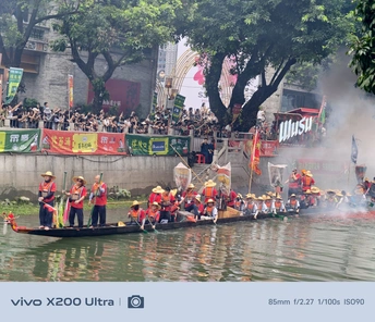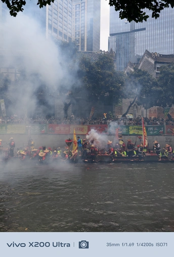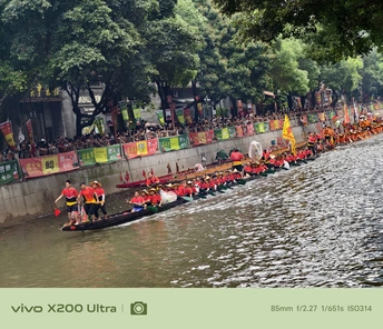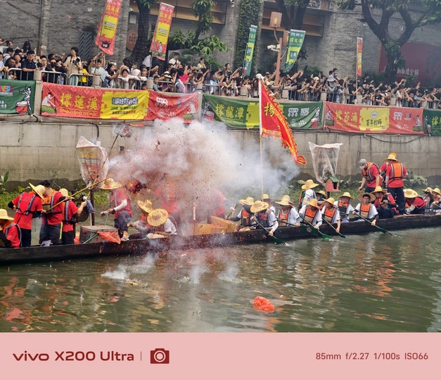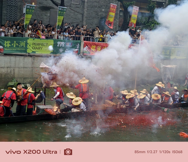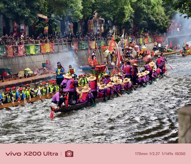 端午节,热闹非凡,祈愿祥和。当端午佳节来临,猎德涌畔汇聚了来自广州各地的近百艘龙舟,形成一道壮观的风景线。在这盛大的龙舟聚会中,鞭炮轰鸣与锣鼓喧天交织出一幅热烈而富有活力的节日画卷,不仅增强了邻里之间的联谊,也彰显了岭南文化中的和谐共处与分享精神。