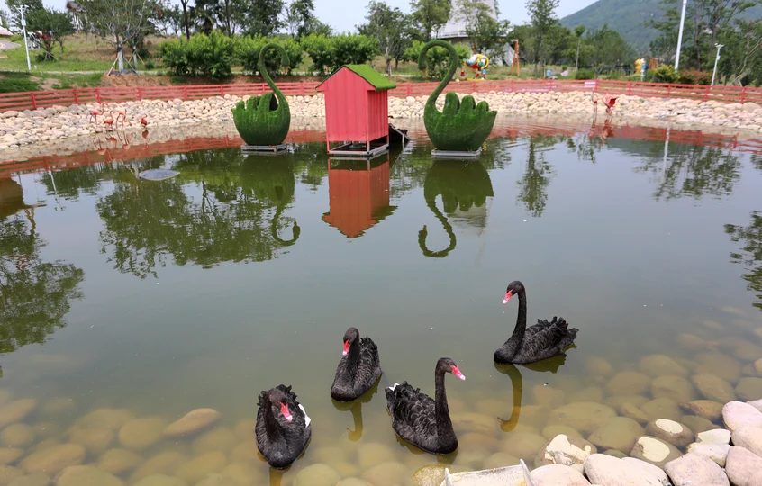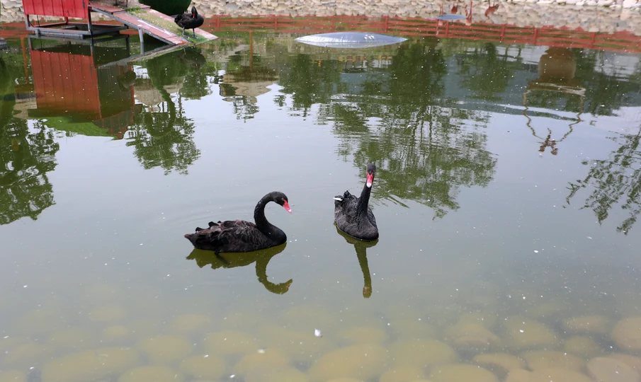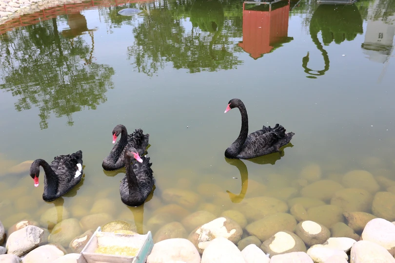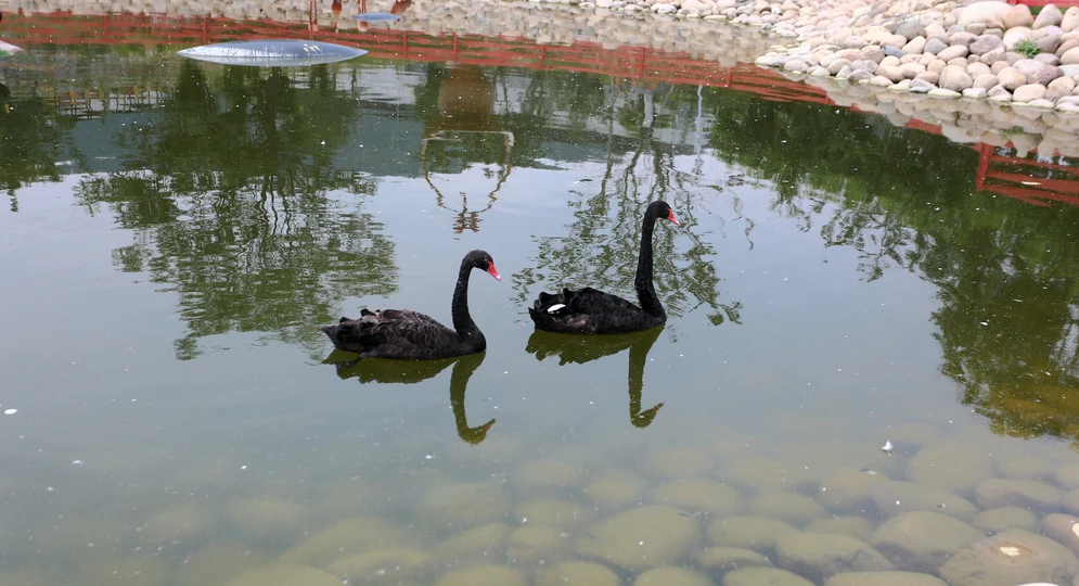 天鹅是一种大型水禽,身长约1.5米,体重在6至14千克之间 [1] [5]。它们全身羽毛为白色,嘴多为黑色,上嘴部至鼻孔部为黄色。天鹅的颈部修长,长度通常超过体长或与身躯等长;嘴基部高而前端缓平,嘴甲位于嘴端正中间;成体眼腺裸露;鼻孔椭圆,位于近嘴基处。第一枚初级飞羽的长度约为第二枚的一半,并几乎与第三枚等长,是飞羽中最长的;尾短而稍圆,尾羽有20至24枚;跗跖短而粗壮,位于身体后部,覆有网状鳞;趾部强健,后趾具有蹼膜。两性羽色相同,或雌性稍淡(如黑天鹅)。幼鸟大多呈褐色