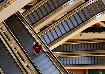 不同方向的电梯错落布置,仿佛置入在四维时空