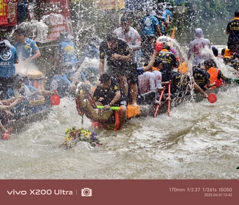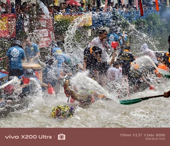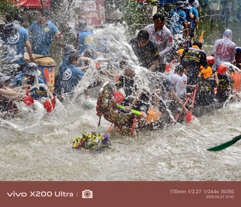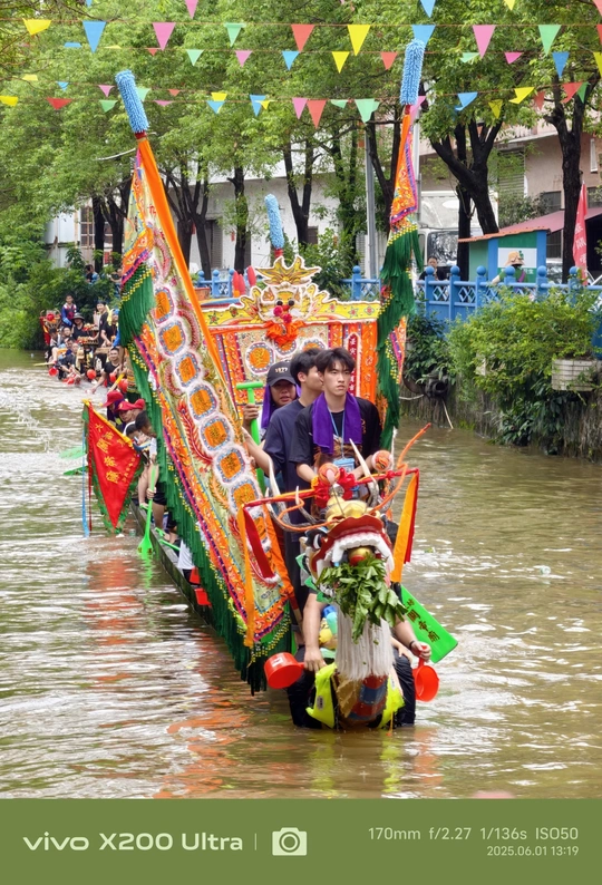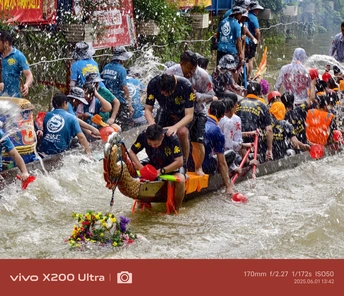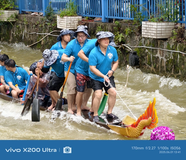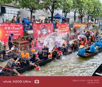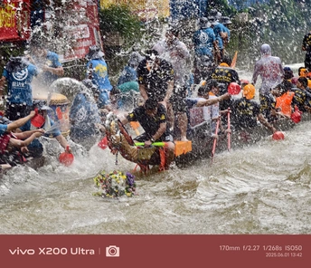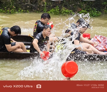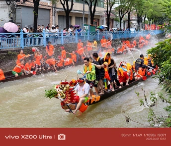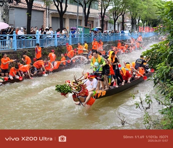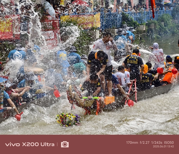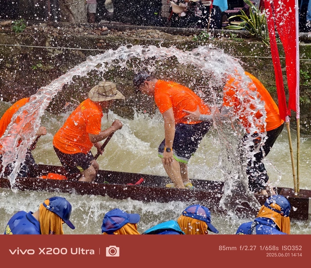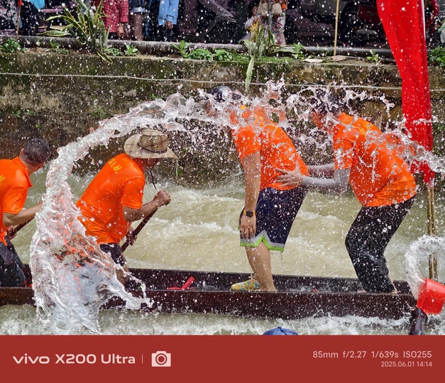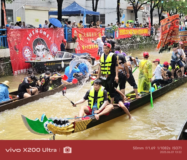 端午节,顺德的龙舟泼水活动热闹非凡。队员们身着色彩鲜艳的队服,头戴质朴草帽,洋溢着蓬勃朝气。手中粉色水桶,成为传递欢乐的法宝,他们尽情泼水,晶莹水花在空中肆意飞舞、绚烂绽放。雨水与河水悄然交融,模糊了界限,却晕染出一片欢乐汪洋。每个人的脸上,都盛开出灿烂笑容,在这场传统民俗与现代欢乐交织碰撞的盛会中,毫无保留地释放着无限活力,将节日的欢腾氛围推向顶点。