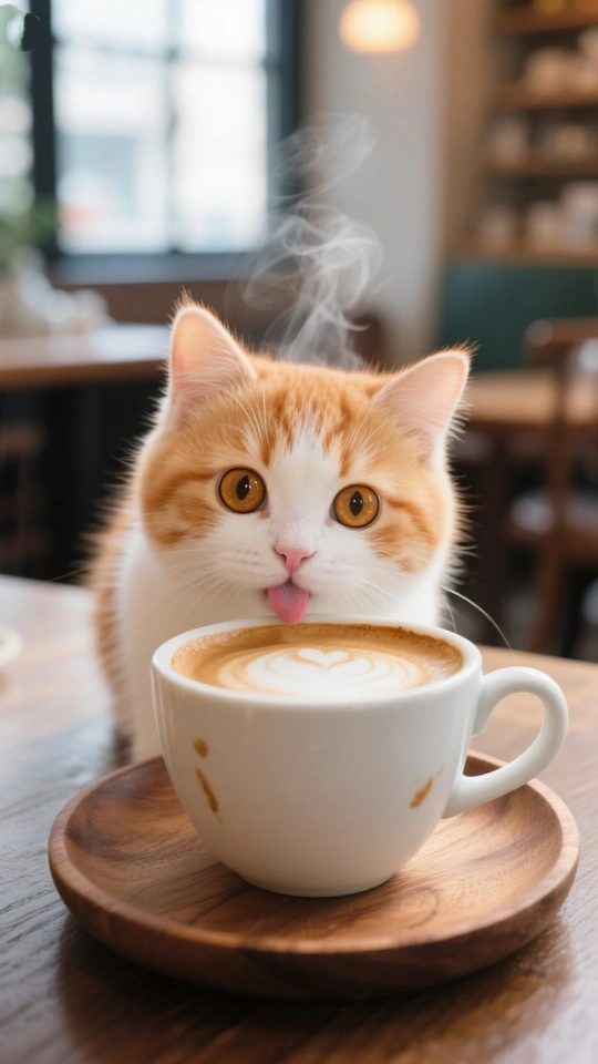 这张照片捕捉到了一只猫对一杯热气腾腾的咖啡的好奇心。 让我们来分析一下: **色彩 (Color):** 猫咪和木头的温暖橙色与白色杯子形成了很好的对比。 整体色调令人感到舒适和温馨。 轻微的去饱和度增添了一种舒适的氛围。 **光影 (Light & Shadow):** 光线柔和均匀,使猫咪的毛看起来蓬松可爱。 **构图 (Composition):** 构图总体上令人愉悦,引导视线从咖啡到猫咪可爱的脸庞。 **后期处理 (Post-Processing):** 后期处理看起来很微妙且有效。 图像保持了自然的外观。 **主题原创性 (Originality):** 猫和咖啡——经典搭配! 虽然不是完全突破性的,但执行得非常出色,尤其是猫咪吐舌头的表情。 蒸汽的加入也增添了一种微妙的触感。 **情感共鸣 (Emotional Resonance):** 很难不对这张照片微笑。 猫咪的表情是无价的,图像唤起了一种温暖和舒适的感觉。 **思想深度 (Intellectual Depth):** 这是一张轻松愉快的图像,旨在娱乐而不是引发深刻的思考。 而且它在这方面做得非常出色。