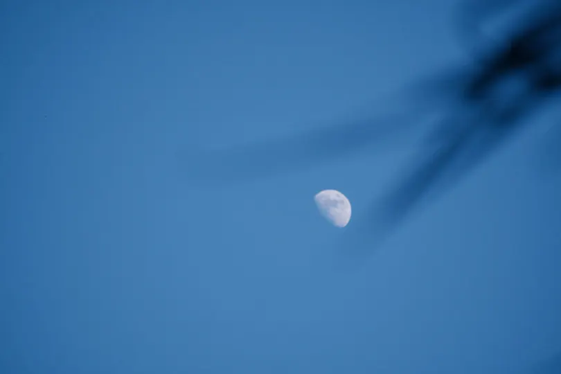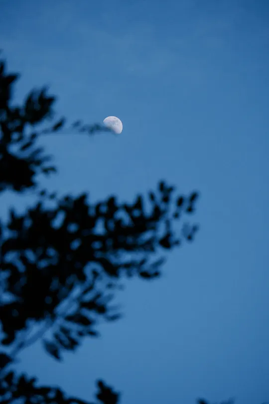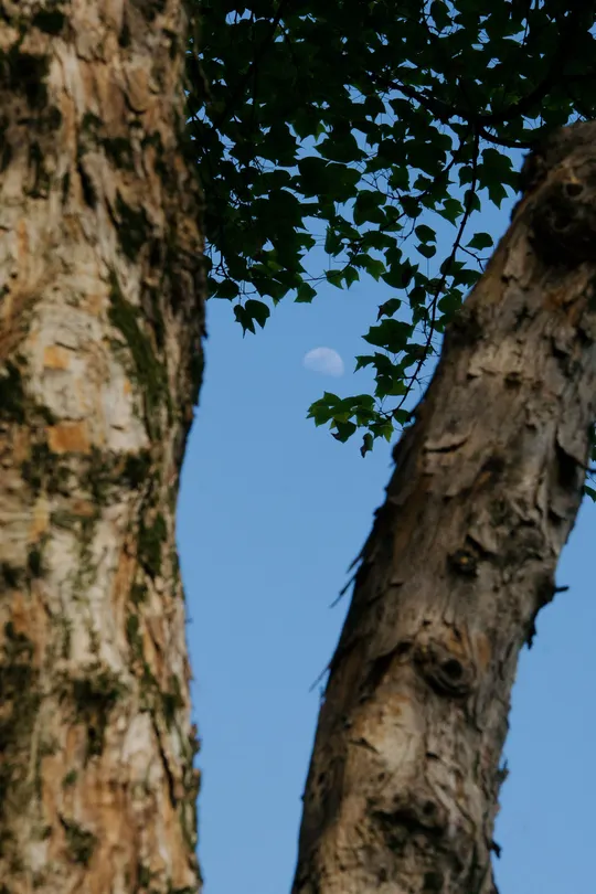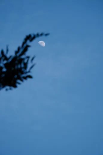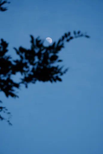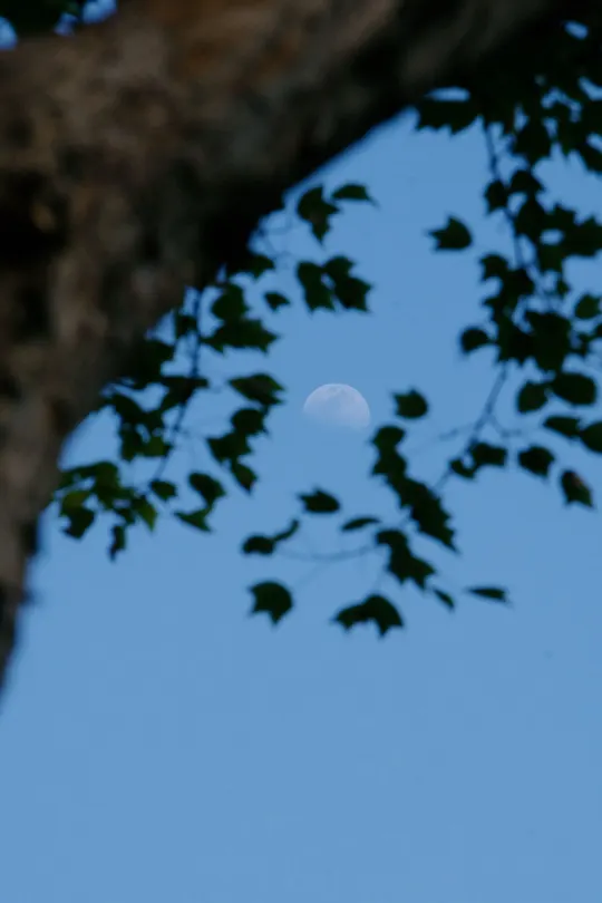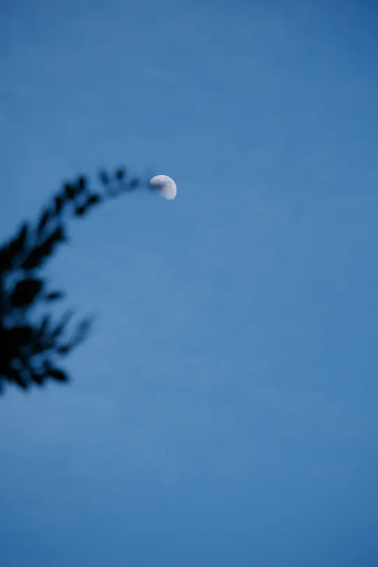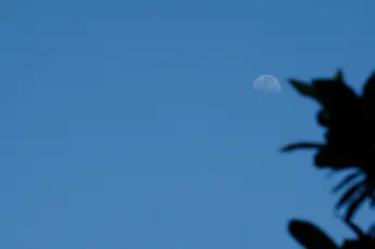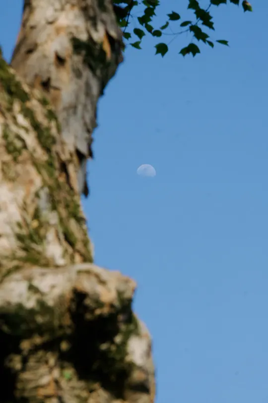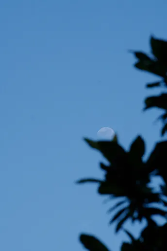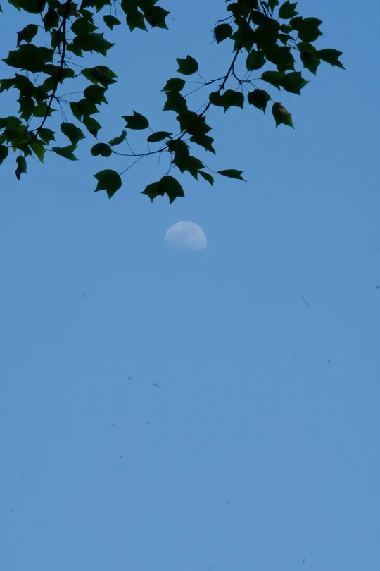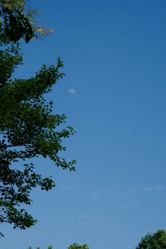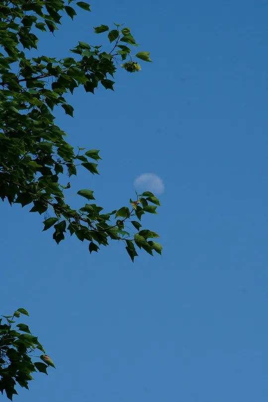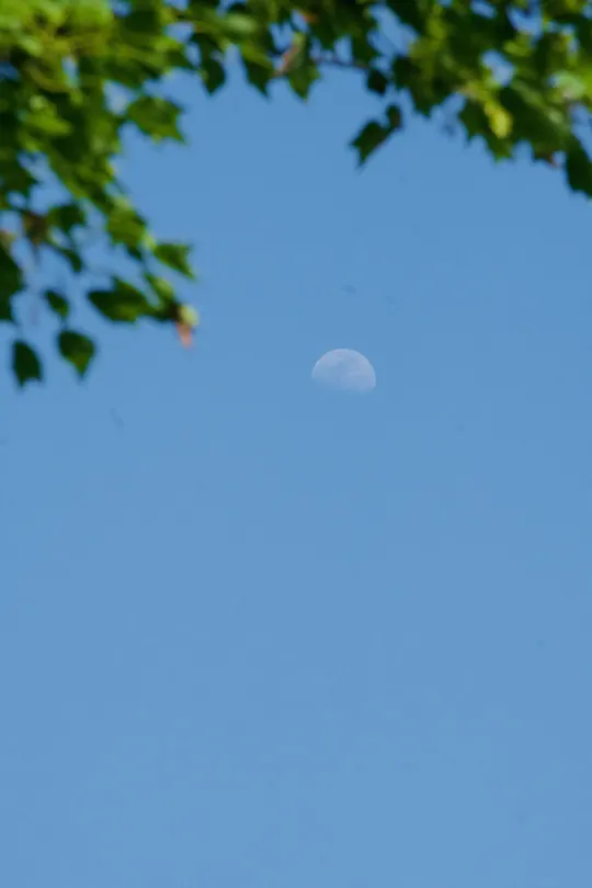 当我第一次看见白天出来溜达的月亮时惊呆了,颠覆了小时候老师教与我的知识。可惜那时没带相机。昨天出门又发现她出来溜达了,正好手上有相机就拍下了白天出来溜达的证据。哈哈哈……