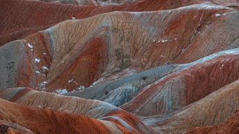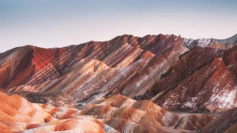 因为没有什么机会出远门,所以只能修一些以前的照片来回味国网的旅程。找到两张青甘线中七彩丹霞的照片其中一张清晰地展现了大地纹理被亿万年地质演化后的色彩和样貌。还有一张,远处有一只小狗,可以做到不违反法律的情况下自由地在丹霞的岩石上行进。