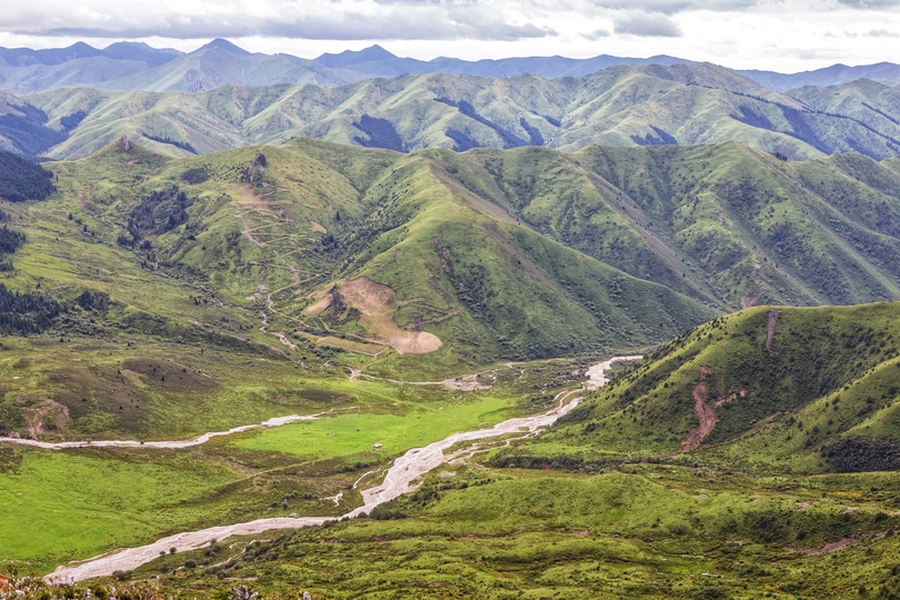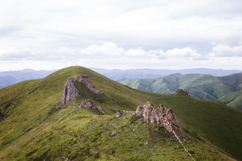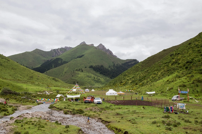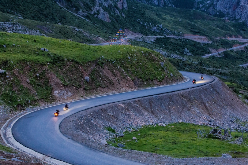 洛克之路起点位于甘肃省卓尼县扎古录镇,终点则是迭部县扎尕那景区,全长106公里。被誉为中国最美100公里路(现在有前后大概三分之一的柏油路面,只有中间三分之一为砂石路加炮弹坑)。这条路因美国植物学家约瑟夫.洛克在1925年从卓尼到迭部的考察行走而得名。沿途包括峡谷、草原、高山河流等地形,风光壮美。虽说比较小众,但这两年去的车是真的多,一路走一路堵、一路颠簸。偶遇帅气摩托车队,炫酷的机车,排列整齐,为这里增添了一抹不羁的活力。