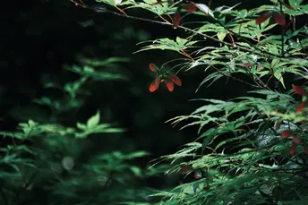 槭树的红色种子在一片绿意盎然中很吸睛。