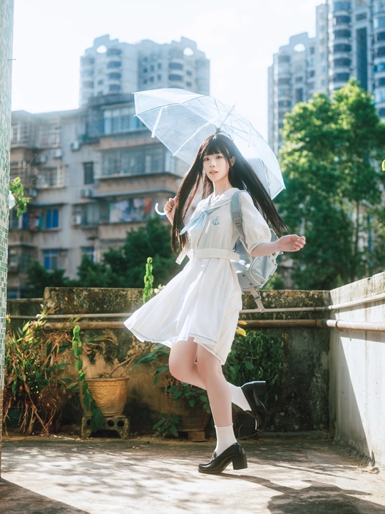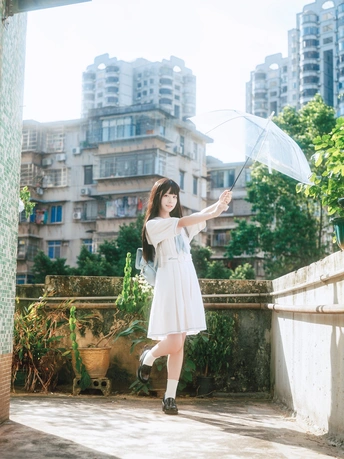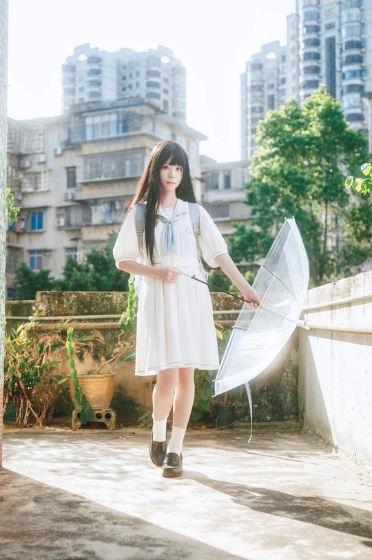 更新一组前几天在华侨新村的JK写真~ 那天正好是广州最热的时候,温度都超过35度,高温天气犹如摄影热情一样,时刻迸发着。 刚开始觉得大晴天的,撑着透明雨伞感觉不是很搭(都是下雨天用的比较搭一些),但是我对透明雨伞就是有一种特别的喜欢,晴天打透明伞,也许玩的就是抽象。