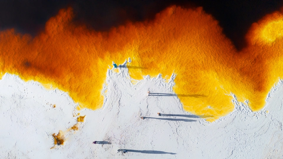 在以蓝绿色为主调的大柴旦盐湖,第一眼看到以黄黑色为主色的蜜蜡湖时候,我觉着它很邪恶[捂脸],尤其在阳光下,那片黑色由深邃过渡到浅滩的橙黄色。我很好奇,如果让飘在蓝色湖泊里的姑娘乘舟到蜜蜡湖上她到底还会有什么感觉。不知是不是盐湖演化的结果,蜜蜡湖也是大柴旦的尽头,前方基本上没有其他的盐湖了,蔓延的继续是戈壁与风沙。 @米拍社长 @米拍编少