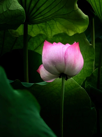 这张照片选择了一个非常漂亮的主题——含苞待放的荷花。整体画面简洁,主体突出,很有意境。但细节上还有提升空间。 色彩:粉色荷花与墨绿色荷叶形成了鲜明的对比,色彩搭配和谐。粉色的运用温柔细腻,给人以宁静祥和之感。只是绿色略显沉闷,后期可以适当提亮。 光影:光线柔和,营造了一种朦胧感。花瓣上的水珠增加了细节和趣味性。但主体光线略微不足,可以考虑局部提亮,增强立体感。 构图:主体放置在画面中心略微偏上,符合视觉习惯,但略显平淡。可以尝试打破常规,将主体放置在三分之一处,或者寻找更有趣的视角。 后期处理:后期处理整体较为自然,没有过度修饰的痕迹。但色彩和对比度略有欠缺,可以尝试调整曲线,增加层次感。 主题原创性:以荷花为主题的作品很多,这张照片在构图和光影上没有特别突出的创新。可以尝试加入更多个人风格的表达。 情感共鸣:照片传递了一种宁静、淡雅的情感,能够引起观者的共鸣。但情感表达较为含蓄,可以尝试通过更富有表现力的构图和光影来增强情感冲击力。 思想深度:照片主要展现了荷花的美丽形态,思想深度相对较浅。可以尝试挖掘荷花背后的文化内涵,例如出淤泥而不染的品格。