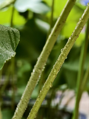 清晨的露,吻过荷的苞。 新绿裹着浅白,在微光里轻颤,像未启的梦,藏着一夏的期许。 风若来,该是温柔的,怕惊落这颗颗剔透,扰了荷苞初绽的静谧。 (或走简洁风 ) 荷苞擎露,新绿待绽,是夏初写给人间的清新信笺 。