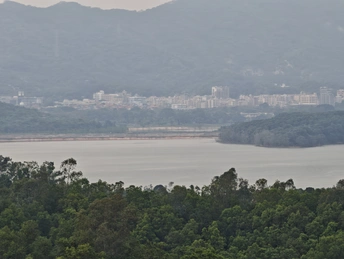 画面呈现湖泊、山林与城市建筑的远景交融,湖水如镜,山林朦胧,城市建筑在远山近树间若隐若现。创意上以大场景展现自然与城市的边界交融,借雾气营造含蓄氛围,让观者感受山水环抱中城市的静谧与宏大,传递自然与人文景观共生的美感 。