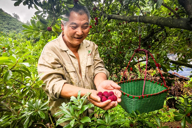 六月的风掠过仙居的山野,漫山杨梅树挂满“红灯笼”,像把整片山林都浸在了蜜里。这抹红,是梅农一年的盼头,如今,更成了日子红火的密码。 从前,梅农靠天吃饭、肩挑叫卖,好果子也难走出大山。现在不一样了—— 手机成了新农具,直播架往树下一摆,阿婆捧着杨梅笑成花:“瞅瞅这黑炭梅,咬一口能甜到心里头!” 电商平台订单“叮咚”响,冷链车直接开到果园,刚摘下的鲜杨梅,跨山越海,成了全国食客舌尖的“红玛瑙”。 政策兜底更让人心安:农技专家上门教管护,品牌扶持让“仙居杨梅”叫得更响。梅农们不再单打独斗,合作社把小农户串成产业链,卖果、加工、研学一体走,一颗杨梅变出N种 “钱景”。 你看集市上,大叔用微信收款码一扫,钱秒到账,笑得眼角皱纹都在跳;果园里,年轻人举着手机直播,弹幕刷满 “下单”,新鲜采摘的红果,正把日子染得鲜亮。这红,是杨梅熟透的颜色,更是梅农们被政策、被科技点亮的生活—— 手机连起世界,电商拓宽富路,三农政策兜底,仙居的杨梅红了,乡亲们的日子,也红得发烫!