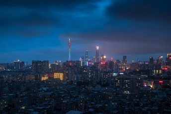 广州下完雨后蓝调时刻非常好看 于是我跑到天台拿相机拍下这一幕