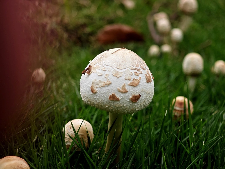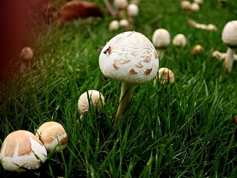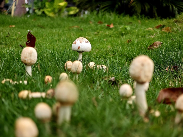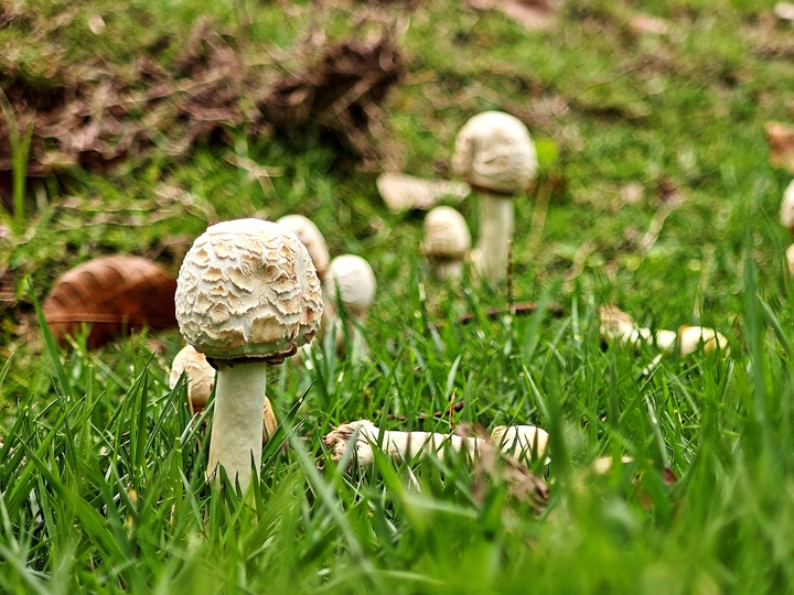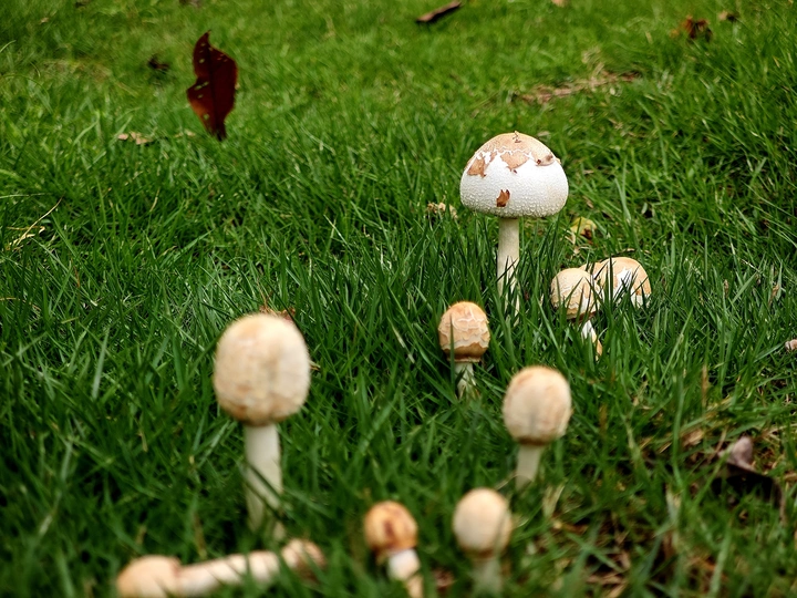 草地上的野磨菇,让人眼晴一亮,但可别乱吃,越好看的越有毒,哈哈😃