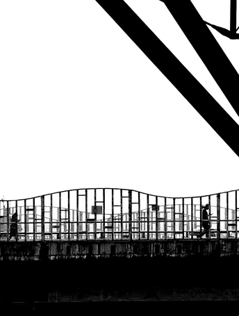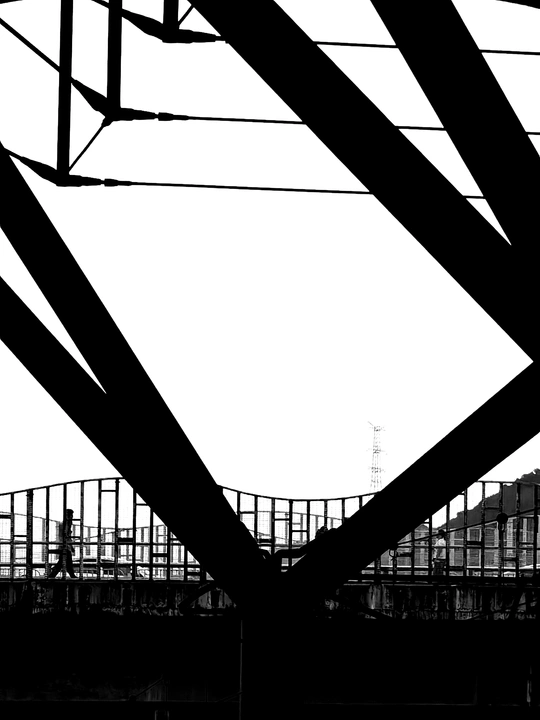钢铁筋骨撑起留白天地,行人于间,走出独属于城市的沉默诗行。
