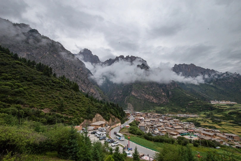 扎尕那位于甘肃省甘南藏族自治州迭部县益哇乡,藏语意为“石匣子”。这里山势奇峻,云雾缭绕,藏寨错落,宛如一幅生动的水墨画。