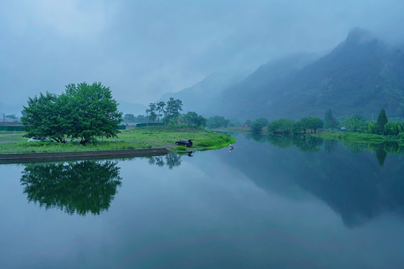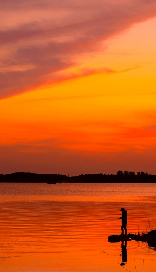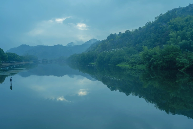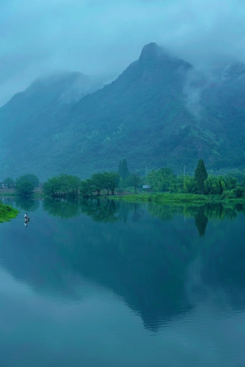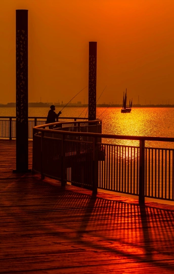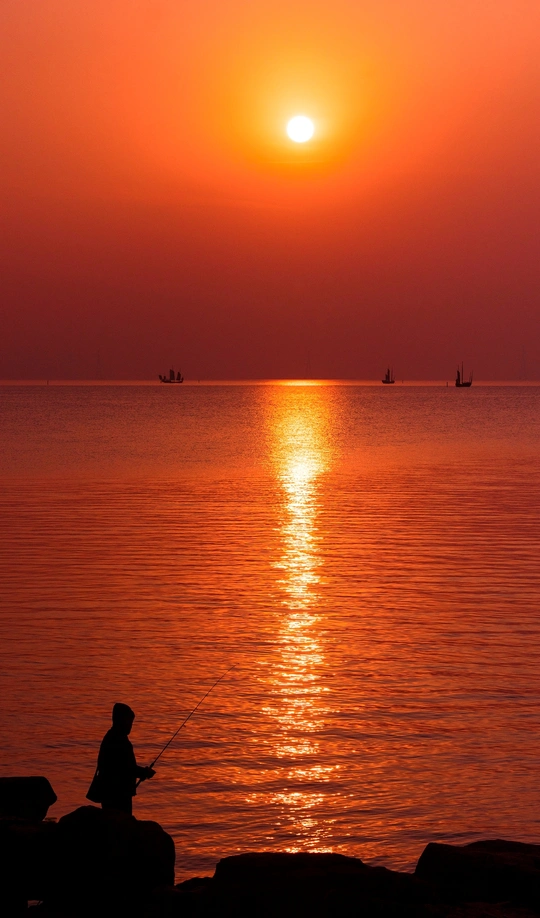 天地间,一个人,执杆而钓。 看风景的人,看到的是孤独,是浩瀚,是灵魂的自由。 钓鱼的人,是什么呢?也许,只有他自己,也许是忘了他自己!