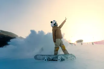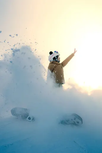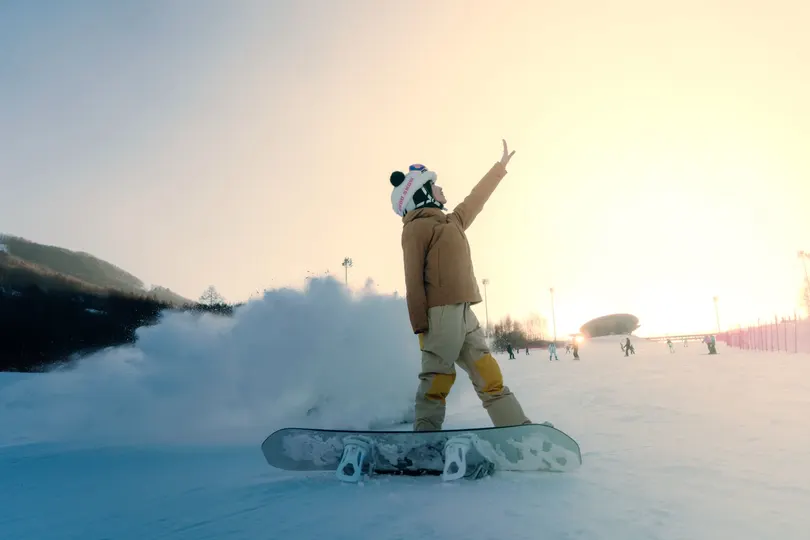 滑雪场落日的时候,找了朋友帮忙呲雪墙,后期使用了径向滤镜