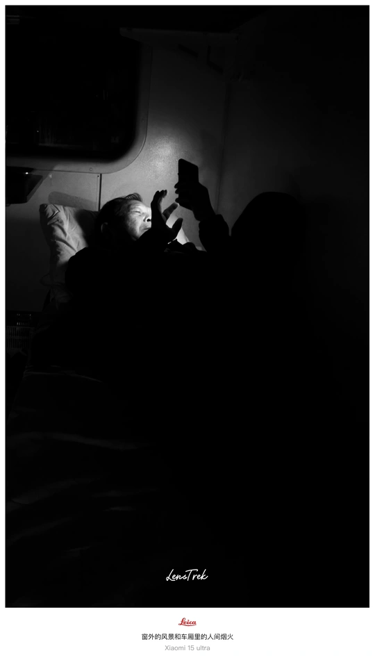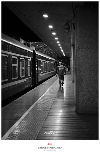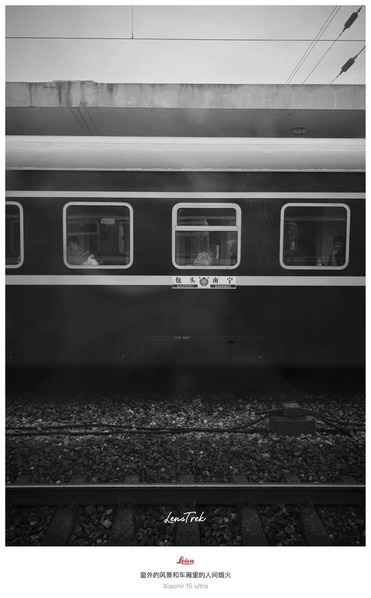 ? 绿皮车厢里,时间被拉成细长的影子。 光穿过蒙尘的窗,落在褶皱的报纸、斑驳的旧皮箱、邻座老人安静的老花镜上。 快门按下的瞬间,褪去色彩,只留下线条与光影的交响。 ? 这组黑白,拍给缓慢流动的时光。 站台上匆匆的告别与抵达, 车厢里凝固的沉思或疲惫, 都成了默片里的一帧。 终点站永远在前方, 而人心,常在来处或他方。 车轮碾过铁轨, 也碾过无数个平行时空里的故事。 慢下来,不是为了抵达, 是为了看清路上的尘埃与光。 绿皮火车晃晃悠悠, 像极了人生。 别只盯着终点站牌, 窗外的风景和车厢里的人间烟火, 才是答案本身。