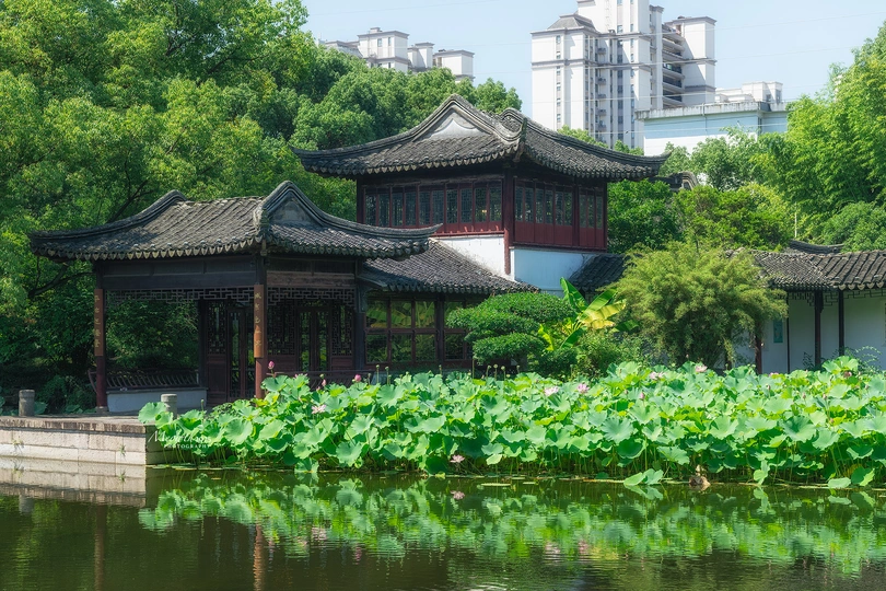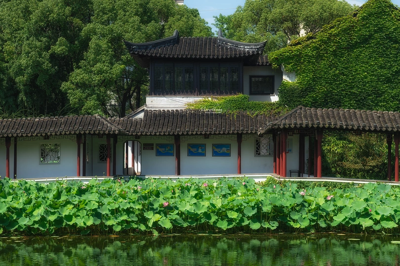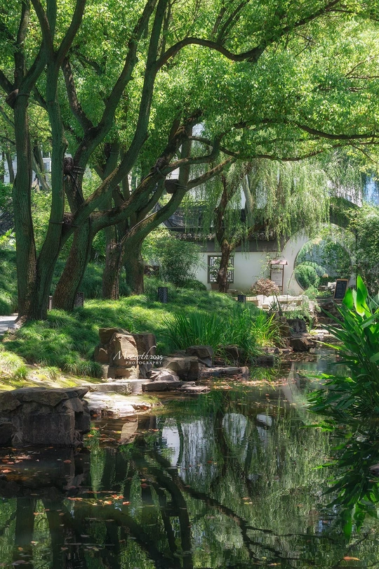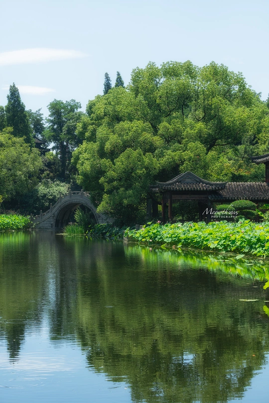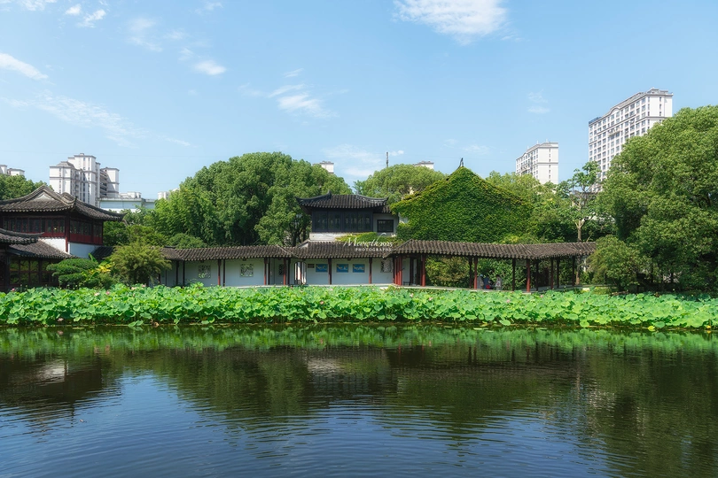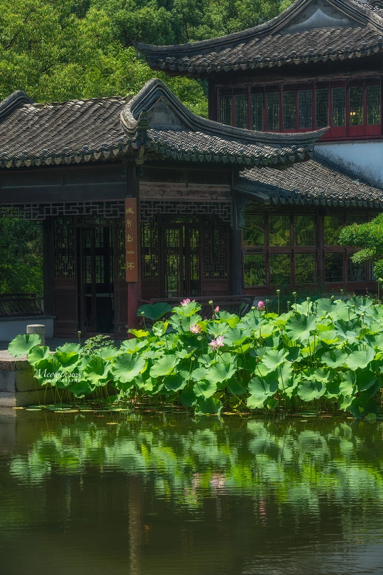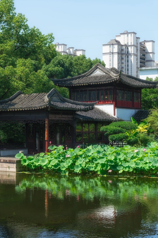 🌸“唯有绿荷红菡萏, 卷舒开合任天真” 🎈古建筑和荷花、荷叶的相互衬托,不正好呼应了那句“隰有荷华” 📍太仓南园