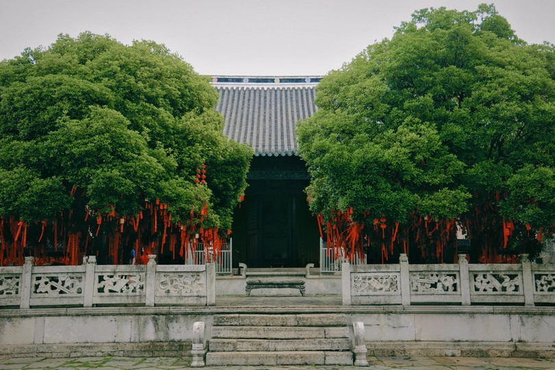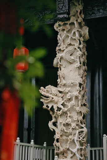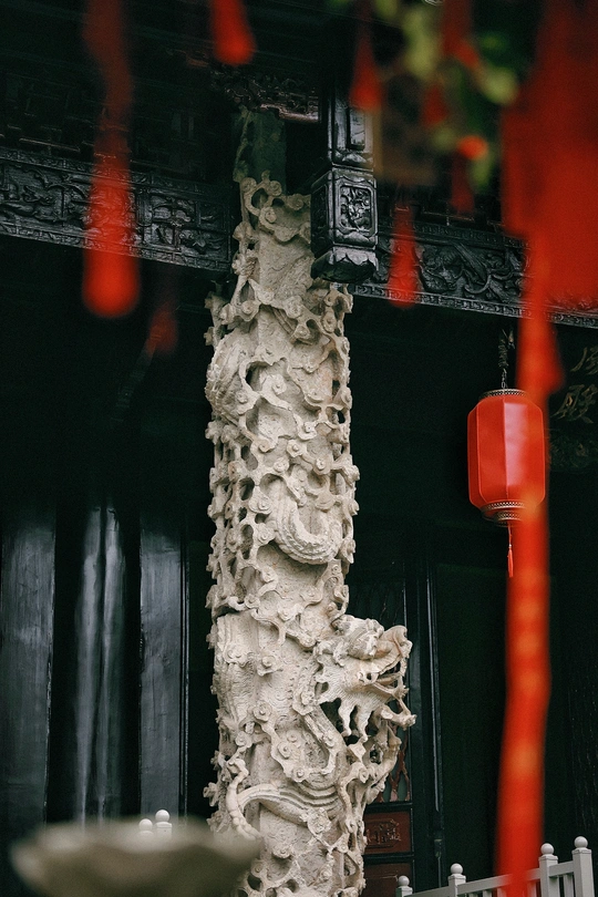 飞檐斗拱间藏着六百年的古韵,青石浮雕上的龙纹栩栩如生,每一道沟壑都镌刻着工匠的虔诚。 红墙映着天光,斑驳树影摇曳在棂星门, 这里静谧得能听见风穿回廊的私语。 抚摸历经岁月的石柱,仿佛能触碰到古时书生赶考的心跳