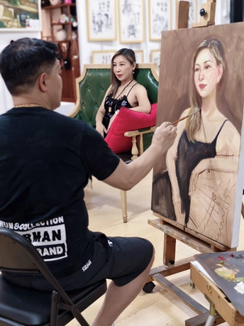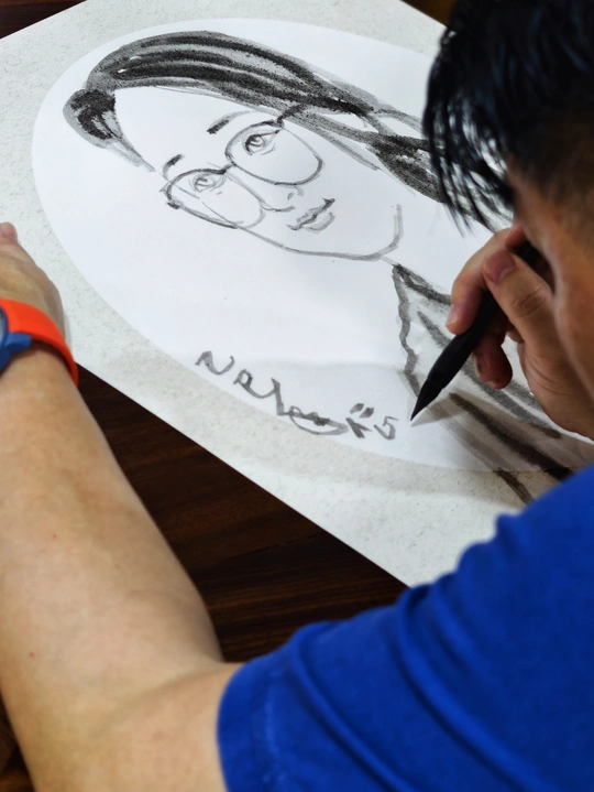 在艺术的璀璨星河中,简仁山是一位闪耀的多面手,作为岭南派漫画家、版画家与油画家,毕业于广州美术学院的他,不仅拥有中国美术家协会会员等多重身份,还长期深耕《南方日报》美术编辑岗位。其创作以手绘插画、人物画和漫画为长,作品题材广泛,从政治、军事的宏大叙事,到文化领域的细腻描绘,均有涉猎,更以独具匠心的插画为新闻报道注入视觉灵魂,为岭南文化人物立像存韵。 漫步艺术殿堂,画笔流转间,鲜活的人像跃然纸上,缤纷的场景栩栩如生。画家们以笔为媒介,定格人物瞬间神态,描摹世间生活百态;观者流连驻足,于画作前低声交流探讨,让艺术不再局限于画布之上,而是化作心与心的共鸣。当走进沙面万宝楼,便能近距离观赏简仁山现场作画,见证灵感与热爱在笔尖交融迸发,感受艺术创作的鲜活魅力与无限惊喜。(沙面万宝楼简仁山创作现场纪实)