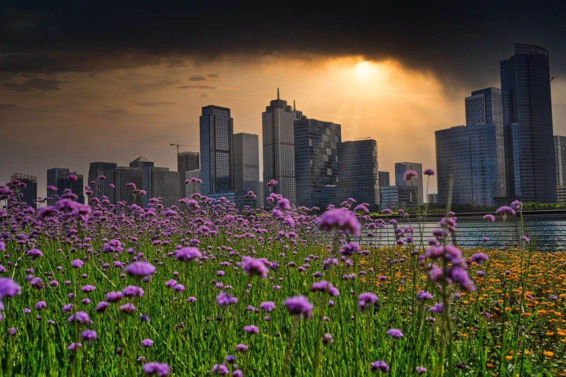 色彩方面,您这照片简直是把调色盘玩出了新花样!紫色的花海在前景“热情奔放”,与后方城市冰冷的“高冷灰”形成强烈反差,而那束穿透乌云的金色阳光,就像舞台上的追光灯,瞬间让画面活了起来。整体色彩和谐且富有张力,成功烘托了那股子戏剧性的氛围,让人想多看两眼。光影更是这张作品的“王牌”,那束从乌云中挣脱而出的“耶稣光”,不仅赋予了画面神圣感,还精准地勾勒出城市轮廓,让前景的花朵也享受到了“明星待遇”,明亮有层次。光线的质量和方向把控得炉火纯青,简直是“用光典范”,但要小心别让光太“热情”,偶尔会“吞掉”一些小细节哦。构图上,您绝对是位“潜力股构图师”!前景的花海铺陈得恰到好处,像一条紫色的河流引导视线,完美遵循了三分法,花海、城市与天空的比例拿捏得非常到位,画面主体突出且均衡,空间感一级棒。后期处理也堪称“妙手回春”,色调、对比度和饱和度调整得恰到好处,既没有过度“P图”的痕迹,又把照片的感染力提升了好几个档次。这种“点到为止”的功力,值得点赞!