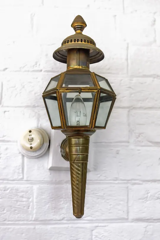 在白砖的墙上, 你静静守望。 黄铜的身躯, 刻着岁月的模样。 玻璃的窗棂, 藏着微光。 似有故事, 在光影里流淌。 开关轻旋, 明暗间时光变换。 你是角落的诗, 点亮静谧的夜晚。