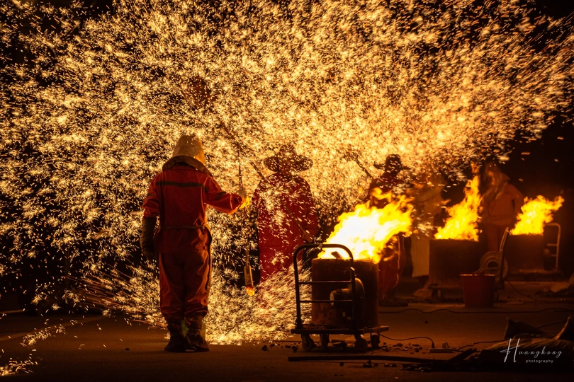 打铁花是中国豫晋地区流传千年的传统民俗表演技艺,2008年被列入国家级非物质文化遗产名录(遗产编号Ⅹ-88),以高温铁水击打形成璀璨铁花的壮观场景著称,兼具祭祀、娱乐与文化价值。