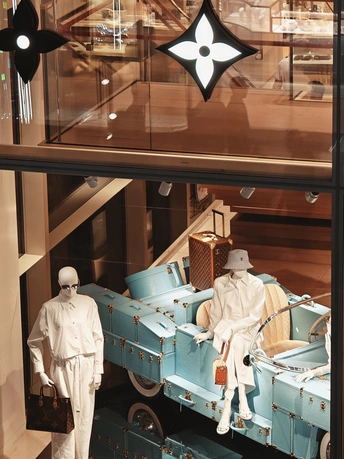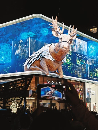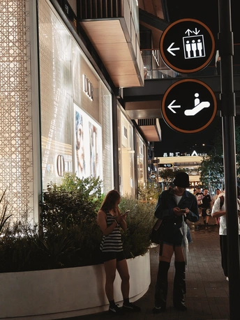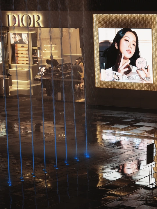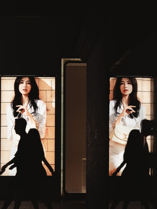 霓虹在玻璃幕墙上流淌 光织成河,倒映着城市的欲望 高跟鞋叩响大理石的琴键 橱窗里的模特,保持着永恒的微笑 人群如潮汐,漫过街道 而夜色,正吞咽着所有的喧嚣