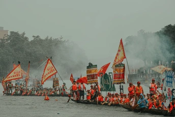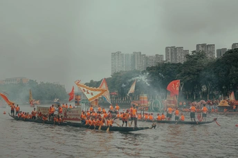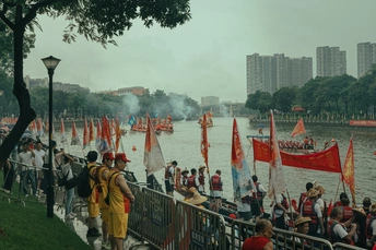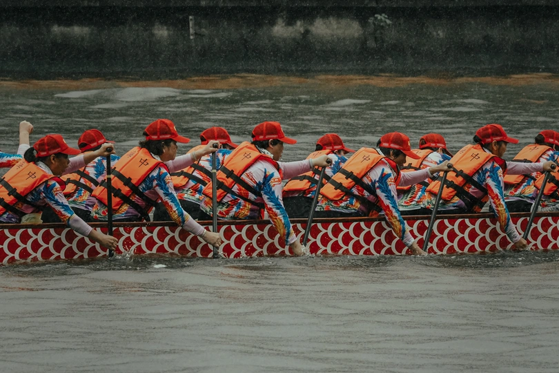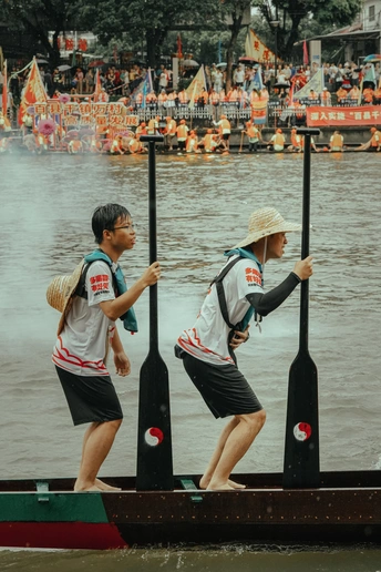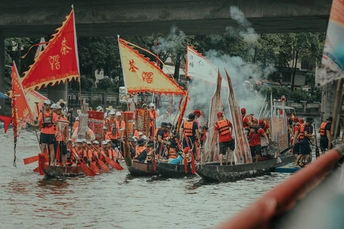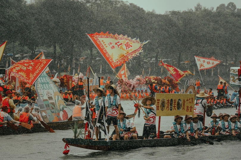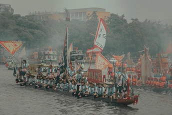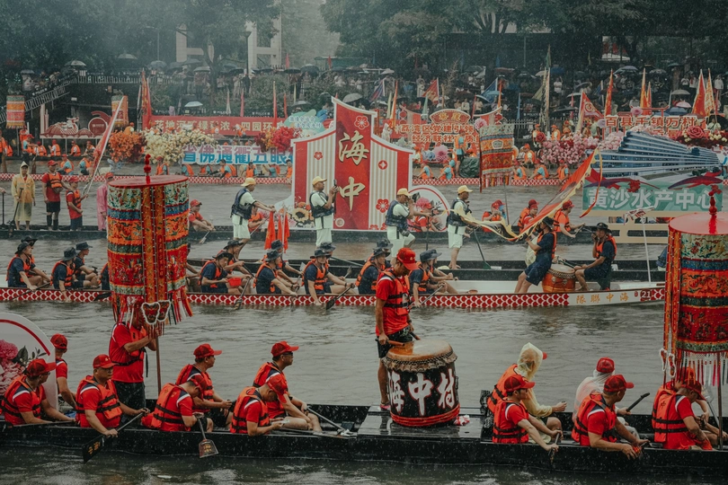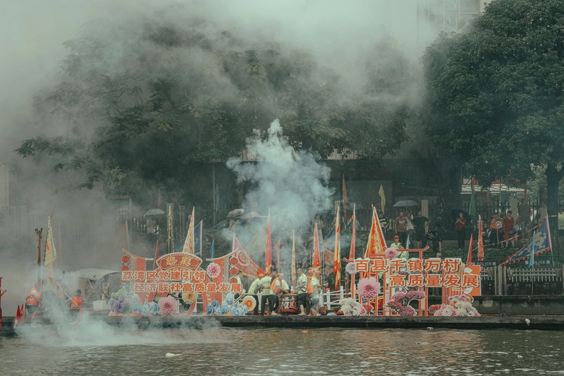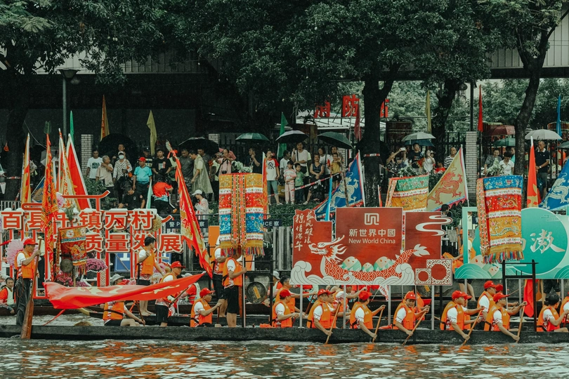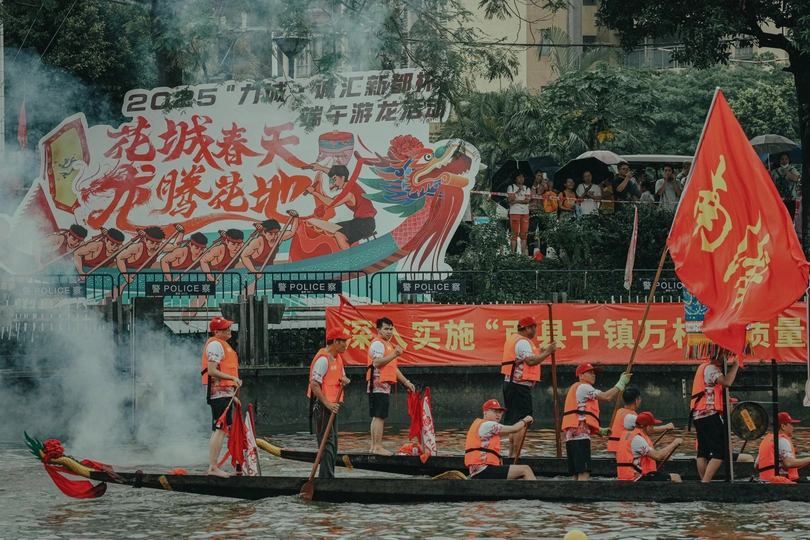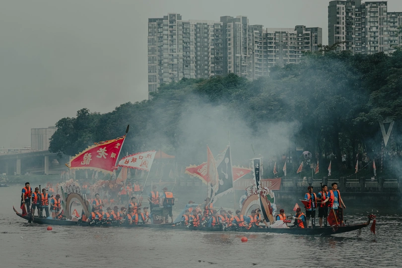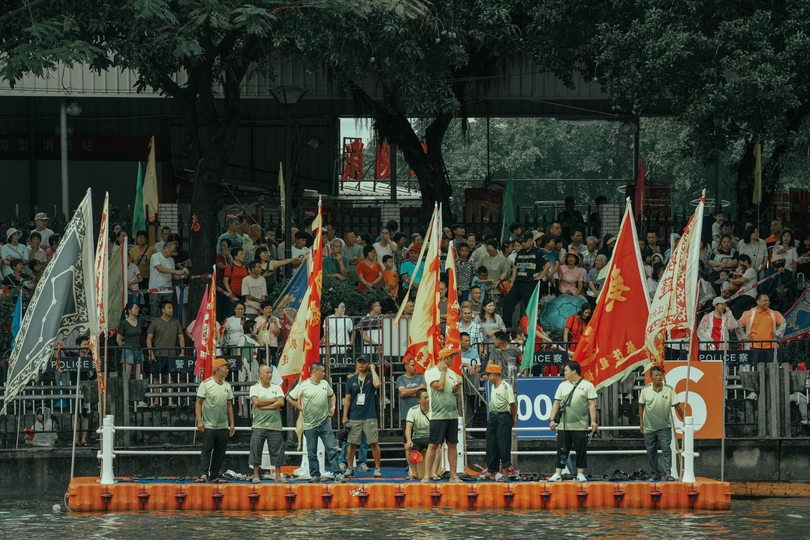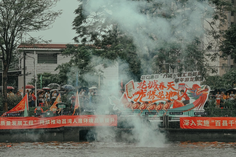 有着百年历史的荔湾东漖龙船景在去年成功复办的基础上,今年又将迎来新的看点。“花城春天·龙腾花地”2025年“力诚·诚汇新都杯”端午游龙活动即将精彩亮相,这不仅承载着岭南水乡的悠悠记忆,还将展现荔湾文化传承与区域发展的新景象。今年的东漖龙船景将在去年的基础上再度升级,茶滘新龙船“力诚号”也将下水,与包括有着600多年历史的墩头老龙在内的20多艘龙船共同启航,组成本次龙船景的全新看点。自古以来,芳村各村社龙舟风俗盛行,龙船文化尤为讲究, 小至龙船上的标旗、罗伞装饰,大至龙船头、旗手的姿势、鼓手的身材、桡手的技艺,鼓手打起的鼓点均有讲法。至今仍为老荔湾人津津乐道。早年荔湾商业兴盛,沿花地河至荔枝湾一带商船往来频繁,各地商贾云集,而每年端午前后,龙船盛景也曾在花地河接连上映,锣鼓喧天,彩旗招展,成为当时宗族村社联系情谊,共谋发展的见证。
