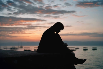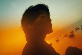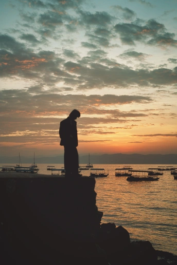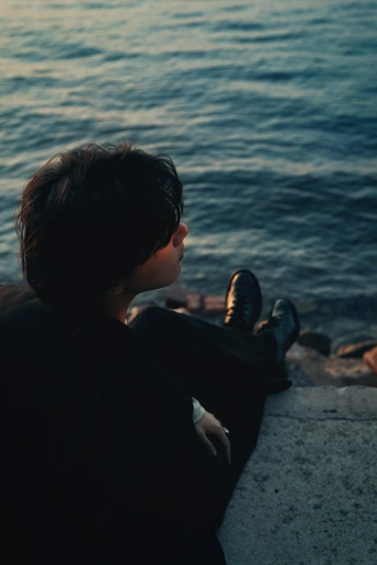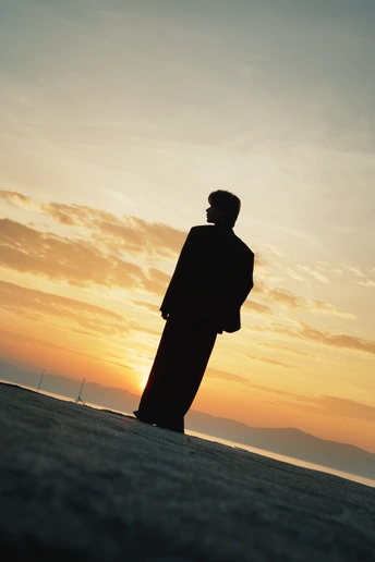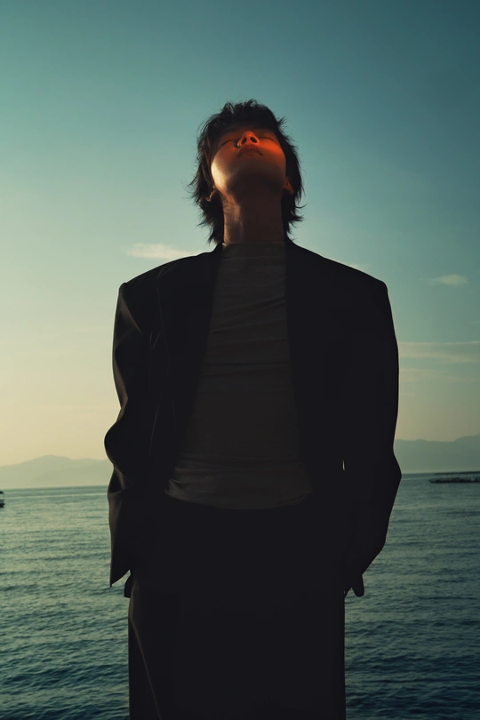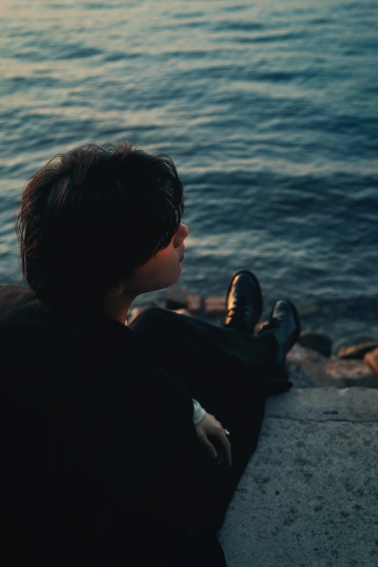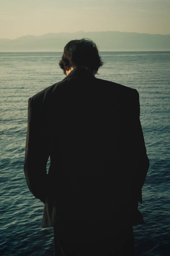 一袭沉静黑西装,独伫抚仙湖畔。背影,是唯一的语言。