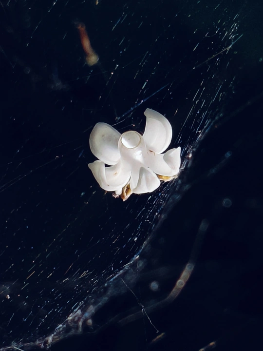 米粒大小的落花,粘在在游丝上,别有一番韵味呢……